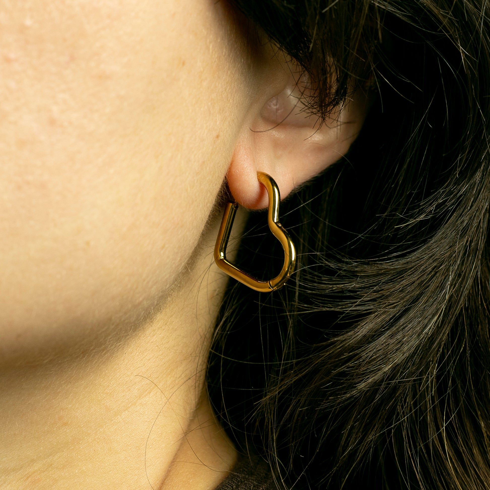 Aura es brillo delicado y energía bonita. Estos aros de corazón irradian una luminosidad suave que ilumina tu rostro y te acompaña con una vibra cálida, femenina y llena de magia.